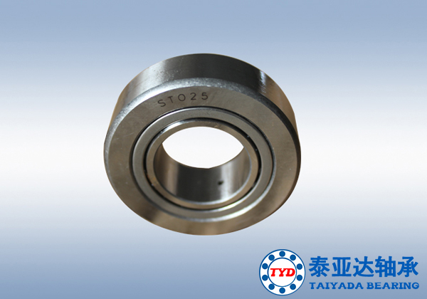 曲線滾輪軸承由一根作為滾子組內滾道的螺栓及一個厚壁外圈組成,螺栓軸的台肩及壓在螺栓上的端麵擋圈組成了外圈沿兩個側麵方向的引導麵。
